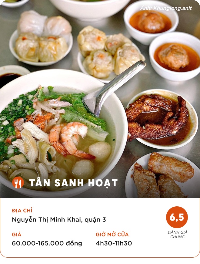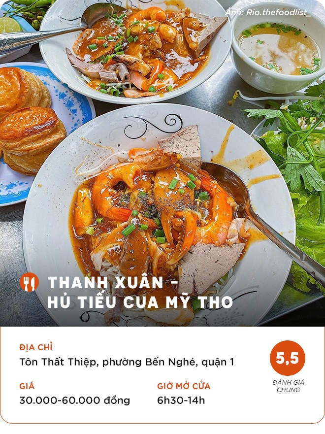 Linh K Nguyen: "Quán khá quen thuộc với những ai mê món hủ tiếu với nước sốt sền sệt đặc trưng. Ấn tượng đầu tiên là chiếc bảng hiệu phai màu với thời gian. Quán có thâm niên hơn 70 năm. Nổi bật nhất là món hủ tiếu tôm cua đặc biệt. Nước sốt hơi mặn nhưng đậm đà và lạ miệng".