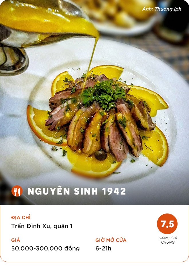Nam Nguyên: "Quán ăn món Tây cho khách Việt. Điều bất ngờ nhất là quán đã qua 3 đời với gần 80 năm tuổi. Nguyên Sinh trước nay nổi tiếng với món pate gà ngon và rẻ. Tôi thường xuyên mua để dành ăn sáng với xôi, bánh mì. Quán mở cửa và đóng cửa sớm. Các món đều ngon, trình bày đẹp. Món mới miến xào cua không hợp với tôi".