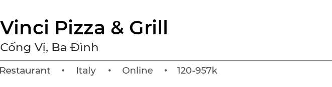 Vinci Pizza & Grill là nhà hàng chuẩn Italy do người bản địa đứng bếp. Được một số người bạn giới thiệu, tôi có ghé quán cách đây 2 tuần.