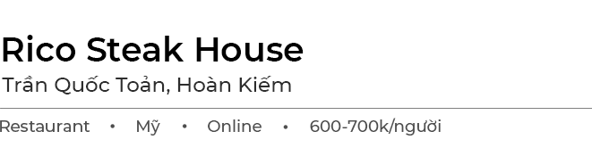 Thực đơn của nhà hàng chưa đa dạng, tuy nhiên chất lượng món ăn được tập trung nên tôi hoàn toàn yêu tâm. Nhân viên phục vụ chu đáo, tận tình. Trước dịch, Rico áp dụng order món qua iPad nên thuận tiện cho khách hàng.