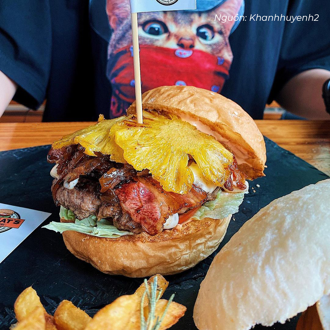 Đến đây, tôi có thể tự chọn chiếc burger theo ý thích từ vỏ bánh, nhân, sốt đến các loại topping. Tôi thường gọi vỏ bánh sesame kẹp thịt bò, bacon giòn và phô mai cheddar. Một phần ăn khá đầy đặn nhưng tương đối nhiều dầu mỡ.