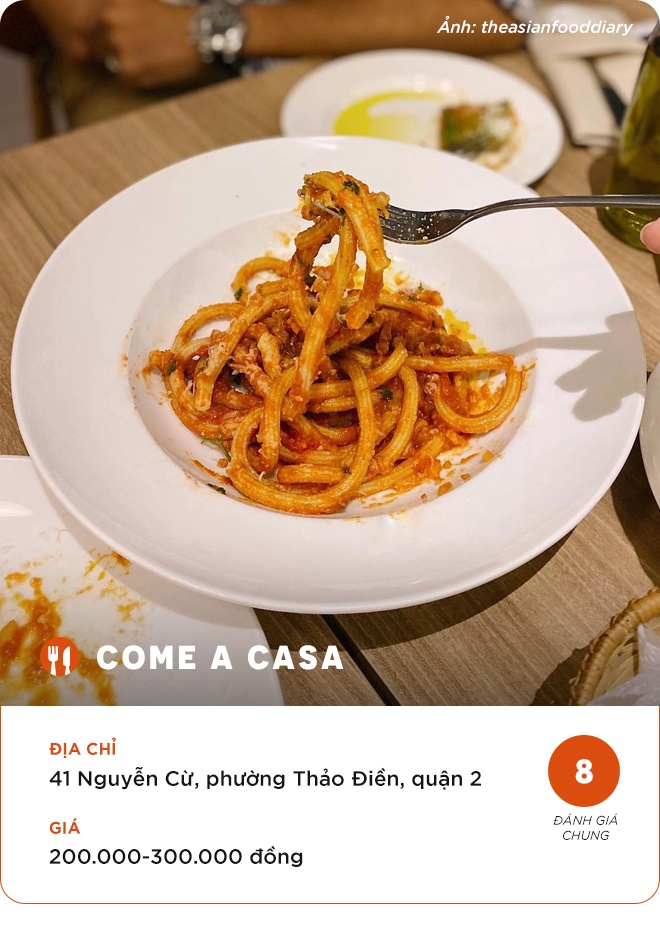 Come a Casa nằm ở vị trí yên tĩnh, không gian tối giản, tạo cảm giác ấm cúng như ở nhà. Địa chỉ này phù hợp cho những bữa ăn gia đình, những buổi gặp mặt ăn uống thân mật.