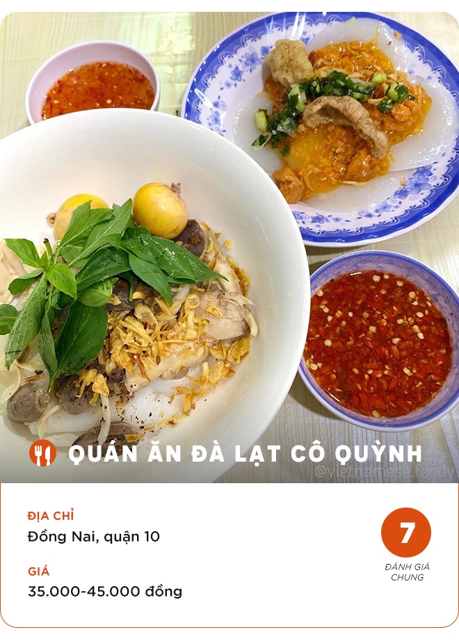 Đây là địa chỉ bạn không nên bỏ qua khi muốn thưởng thức các món ngon Đà Lạt giữa lòng TP.HCM. Trong đó, được thực khách ưa thích phải kể đến món bánh ướt lòng gà. Một phần đầy đủ gồm thịt và lòng gà trộn với hành tây và sốt chanh tươi, cho lên bánh ướt và thêm chút rau thơm, hành phi. Quán nhỏ mở cửa từ 15h, nằm trong con hẻm trên đường Đồng Nai.