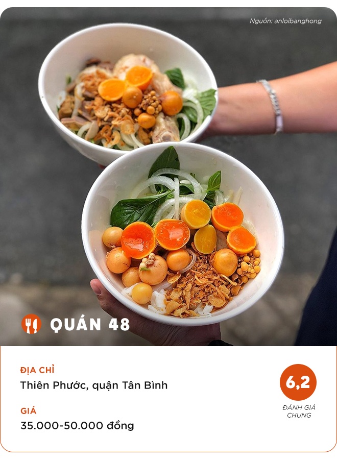 Quán 48 nằm trên đường Thiên Phước mang đến hương vị khó quên với bánh ướt lòng gà trứng non lòng đào. Lòng gà chế biến sạch sẽ kết hợp cùng trứng non béo ngậy, chan thêm nước mắm tỏi ớt cay cay tròn vị. Ngoài ra, quán còn phục vụ những món ăn khác như gỏi lòng gà, cháo nấm rơm thịt gà…