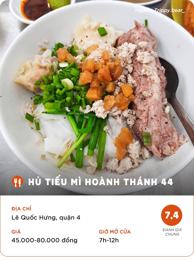 Dương Tử: “Đi tới hẻm 538 Đoàn Văn Bơ quẹo phải là thấy quán, dù vậy, vẫn khó đi vì đường nhỏ xíu. Quán đông khách, có khi còn thiếu chỗ ngồi cho khách. Mình gọi hủ tiếu khô thập cẩm, mì thập cẩm 37.000 đồng, chén trứng 20.000 đồng, tô xí quách 45.000 đồng. Nước lèo ngon, đồ ăn cũng chất lượng, tóp mỡ hành phi thơm, giòn".