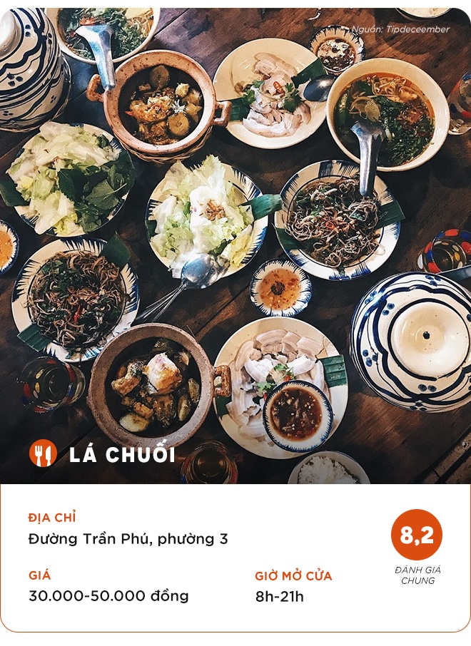 Tọa lạc trên con đường Trần Phú, Lá Chuối cũng là một trong những địa chỉ “chuẩn cơm mẹ nấu” được thực khách lựa chọn khi đến đến Đà Lạt. Quán mang phong cách riêng, thiết kế hoài niệm, xưa cũ cộng hưởng với tên quán gần gũi, mộc mạc tạo cảm giác ấm cúng.