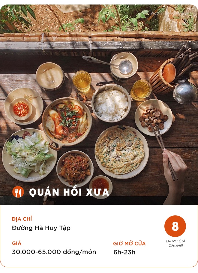Đây là một trong số những quán cơm món Việt nổi tiếng ở Đà Lạt. Đúng như tên gọi, quán cơm Hồi Xưa được thiết kế theo phong cách xưa cũ có không gian giản dị gần gũi với thực khách. Đến nơi đây bạn sẽ thoải mái tạo ra những bức hình sống ảo thú vị cùng vật dụng thân thuộc tủ gỗ, ti vi cũ kĩ đến không gian sân vườn xanh mát.