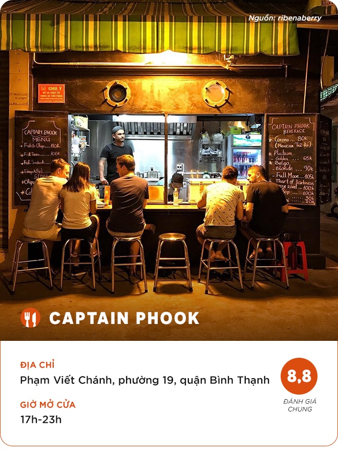 Captain Phook có không gian độc đáo với khu vực ngồi ngoài hẻm, bếp mở, cho phép thực khách quan sát đầu bếp chế biến. Vị trí ngoài đường nhưng không hề lộn xộn như các quán vỉa hè. Nếu muốn riêng tư, bạn có thể chọn ngồi trong nhà.