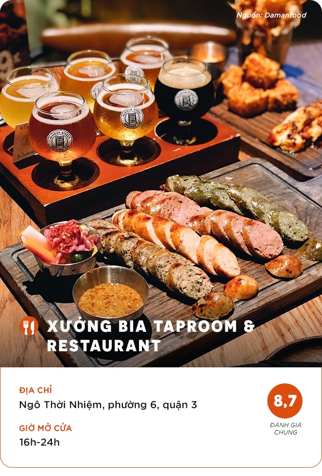 Địa chỉ này nổi bật với các loại bia thủ công phong phú. Không gian ở đây rộng, thoáng với những bàn dài trong nhà và ngoài trời, phù hợp các cuộc hẹn hò đông người.