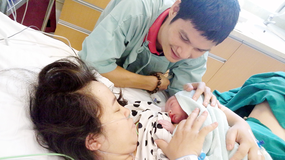 | Anh Phạm Văn Quyết hạnh phúc khi được cùng vợ trải qua thời khắc quan trọng chào đón sự ra đời của bé Phạm Quang Hải Phong - Ảnh do bác sĩ khoa sản, bệnh viện Vinmec cung cấp. |