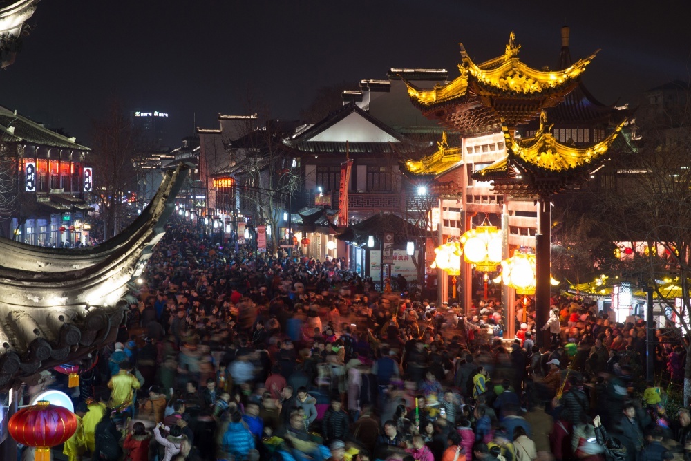 | Người dân địa phương và khách du lịch chen nhau trong lễ hội đèn lồng ở đền thờ Khổng Tử tại thành phố Nam Kinh, thủ phủ tỉnh Giang Tô. Ảnh: Reuters |