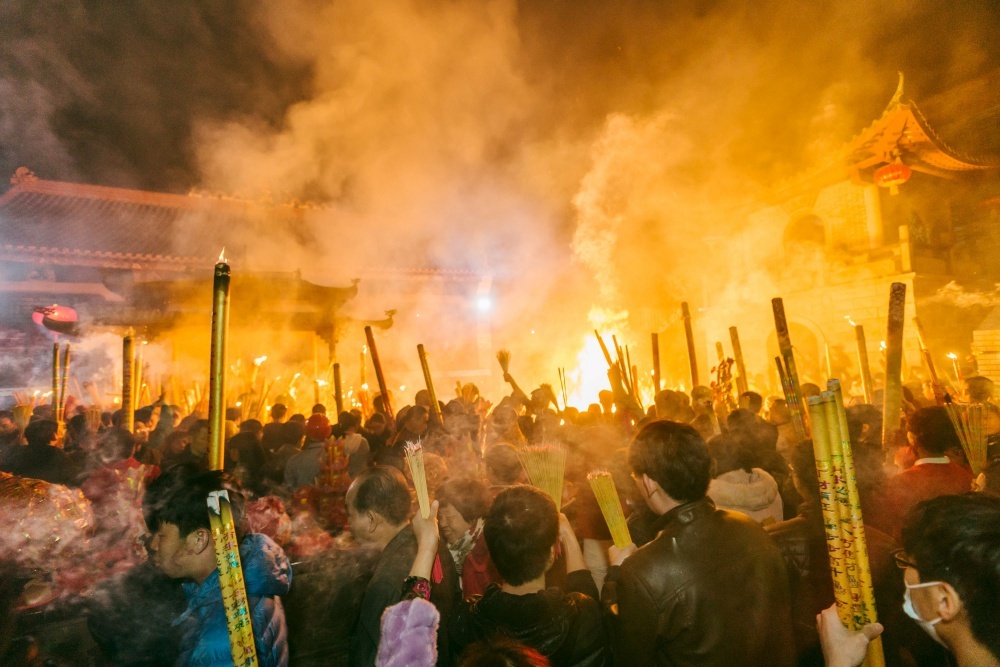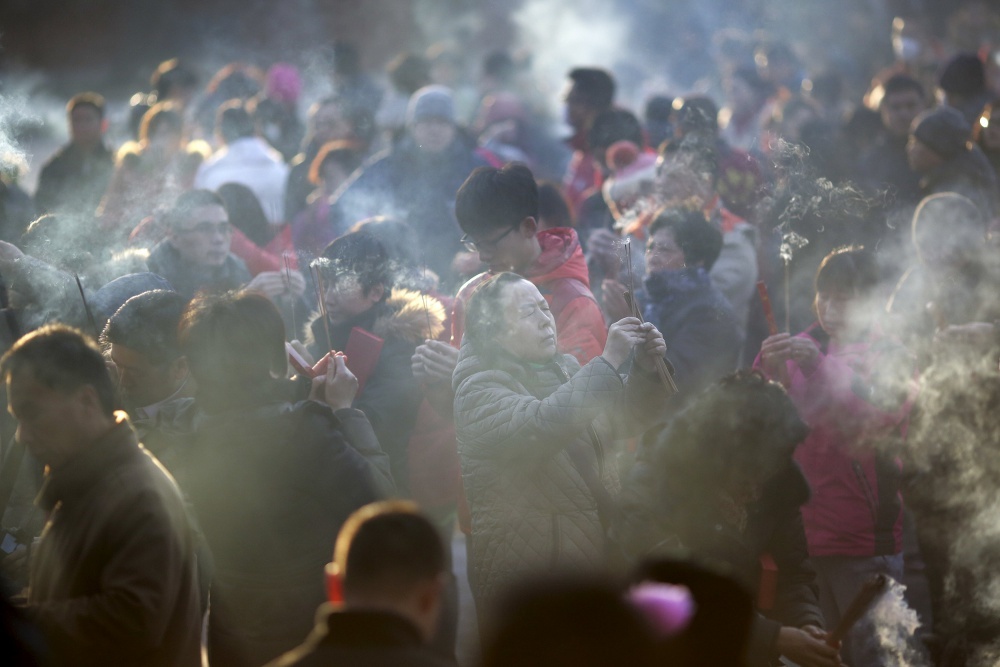 Tại chùa Ung Hoà Cung ở thủ đô Bắc Kinh, người dân thắp hương để cầu khấn cho một năm mới tốt lành. Người Trung Quốc có thói quen đi lễ chùa sau đêm giao thừa và ngày đầu năm mới.
