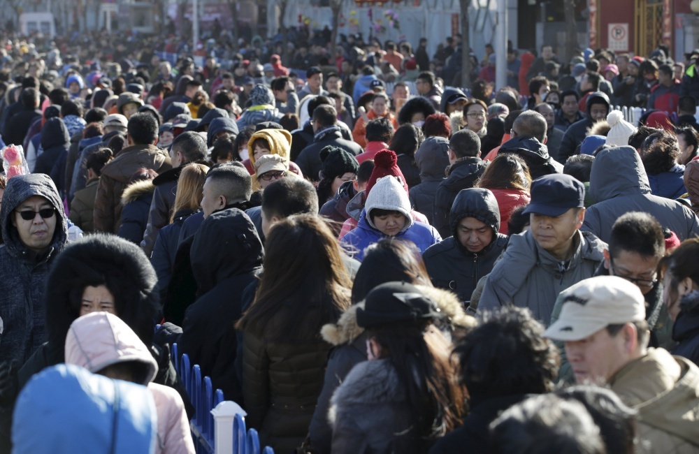 | Dòng người xếp hàng vào Bạch Vân Am để được chạm vào đá khỉ và cầu may mắn trong ngày đầu tiên của Tết âm lịch. Hàng chục nghìn người đã đến các đền thờ Đạo giáo ở thủ đô Bắc Kinh nhân dịp năm mới âm lịch. Ảnh: Reuters |