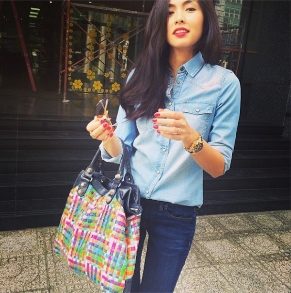 | Người đẹp nổi bật với xu hướng denim on denim và túi big size. |