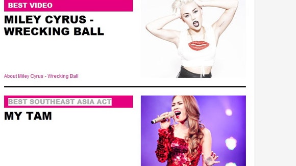| Mỹ Tâm giành danh hiệu Best Southeast Asia Act. |