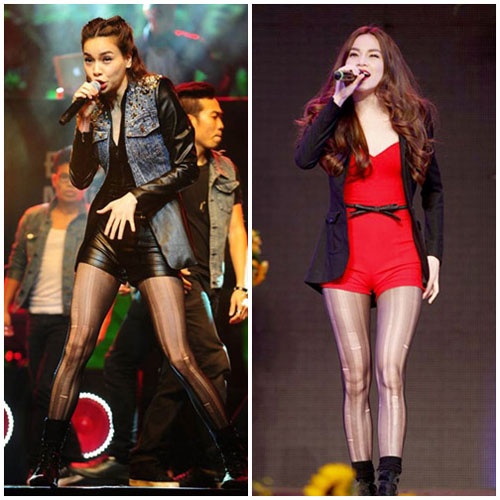 Hà Hồ gây ấn tượng với những màn vũ đạo sôi động, điều này khiến cho style khoe chân thon nuột trở nên hợp lý hơn bao giờ hết. Sự "ngắn gọn" giúp nữ ca sĩ dễ dàng thực hiện các động tác nhanh, mạnh, đẹp mắt trên sân khấu. Ngoài Hà Hồ, nhiều sao nữ cũng ứng dụng style này trên sân khấu nhạc nhưng không có ai diện váy áo khoe chân thon nuột quyến rũ và mật độ dày như người đẹp.