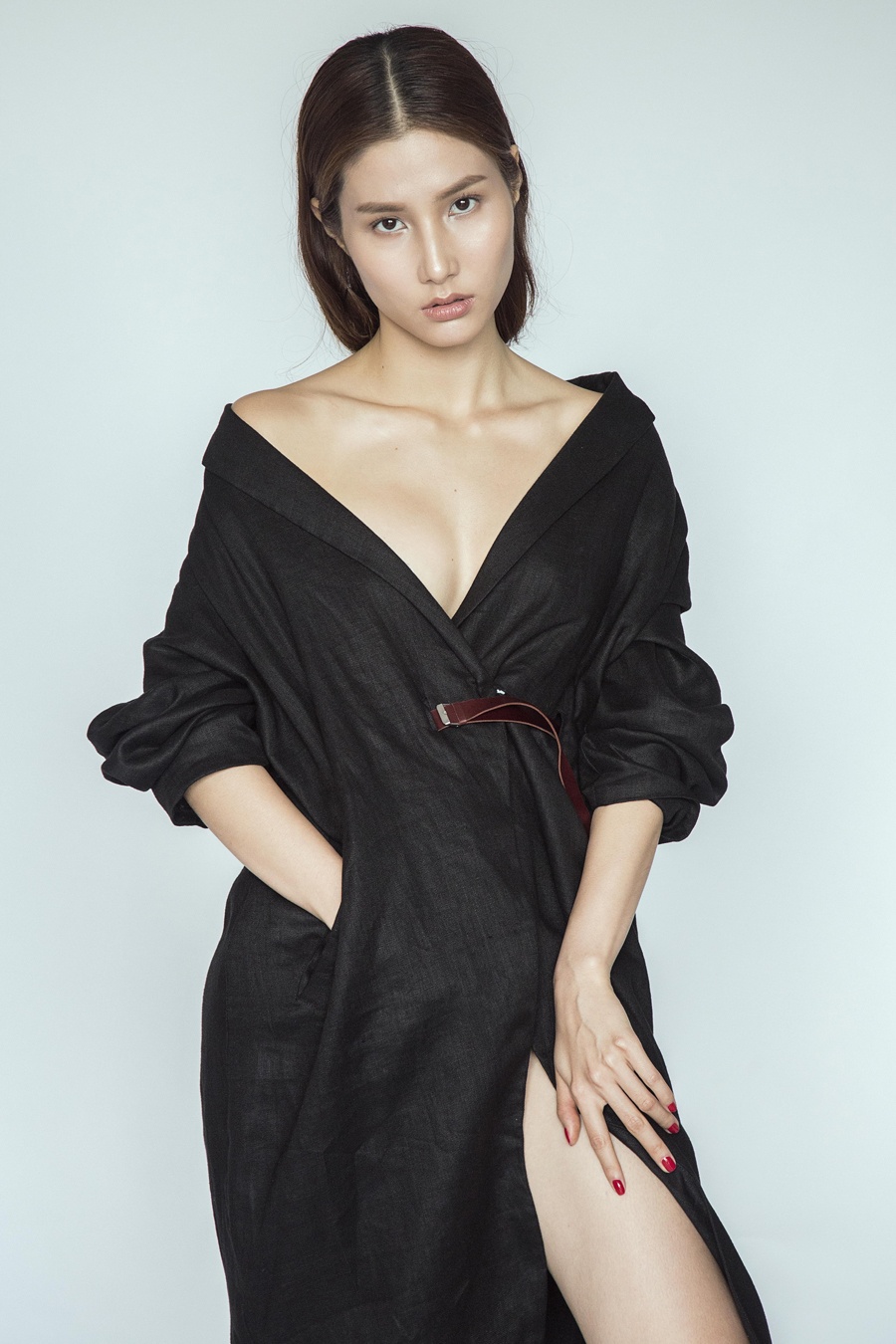 | Ngoài ưu điểm gương mặt khả ái, vóc dáng cân đối, Diễm My còn có lợi thế diễn xuất. Cô tạo sức hút cho bộ ảnh nhờ gương mặt lạnh, ánh nhìn sắc sảo. Bộ cánh tối màu khoe khéo vai trần. |
