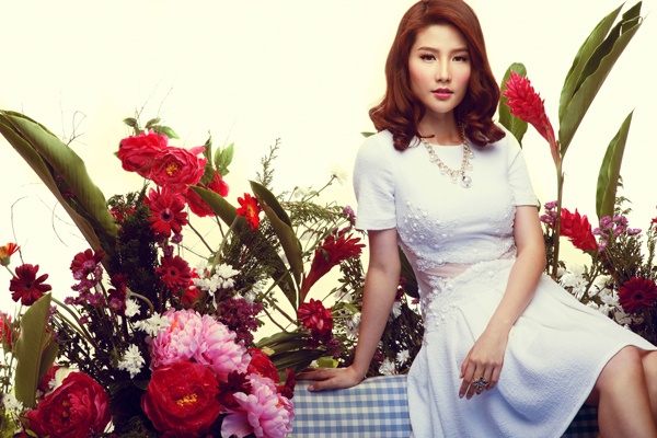 | Mái tóc bồng bềnh, làn da trắng nõn tôn vinh những bộ trang phục màu pastel. |