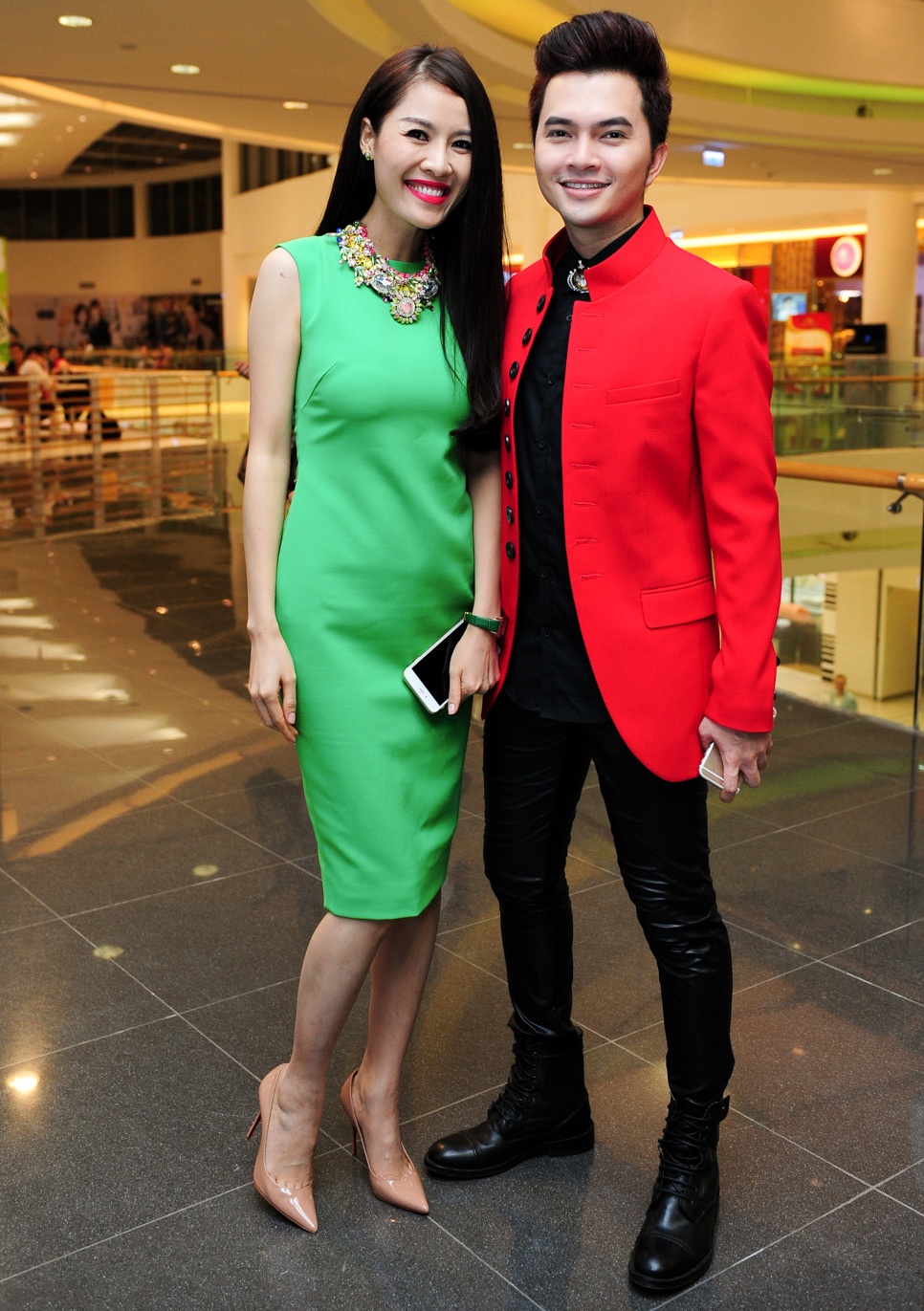 | Quế Vân và Nam Cường nổi bật với trang phục màu sắc. Cả hai rất háo hức chờ đón phim vì nam ca sĩ Bay giữa ngân hà tham gia lồng tiếng cho bộ phim. |