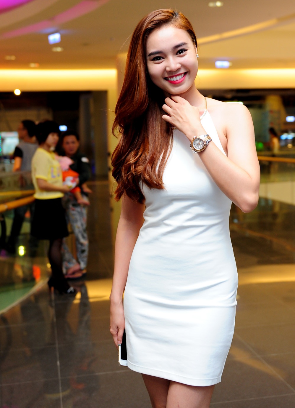 | Lan Ngọc mặc váy ôm, rạng rỡ đi xem phim. |