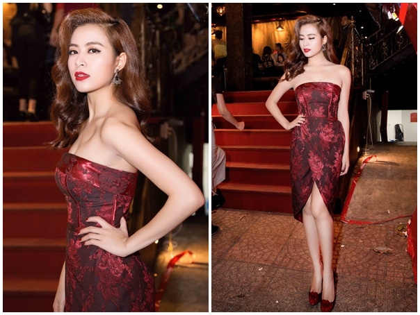 Góp mặt trong nhóm sao đẹp còn có nữ ca sĩ gợi cảm - Hoàng Thùy Linh. Dự sự kiện tại TP HCM, cô thu hút sự chú ý nhờ đầm dáng quây, khoe khéo vóc dáng cân đối và vai trần quyến rũ. Gương mặt trang điểm đậm và tóc xoăn bồng bềnh giúp phong cách người đẹp Hà thành thêm hoàn hảo. Ảnh: Tiên Nguyễn