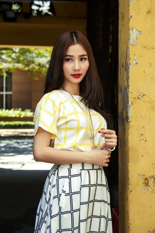 | Diễm My 9X diện trang phục kẻ sọc và hóa thân thành tiểu thư đài các trong bộ ảnh mới. |