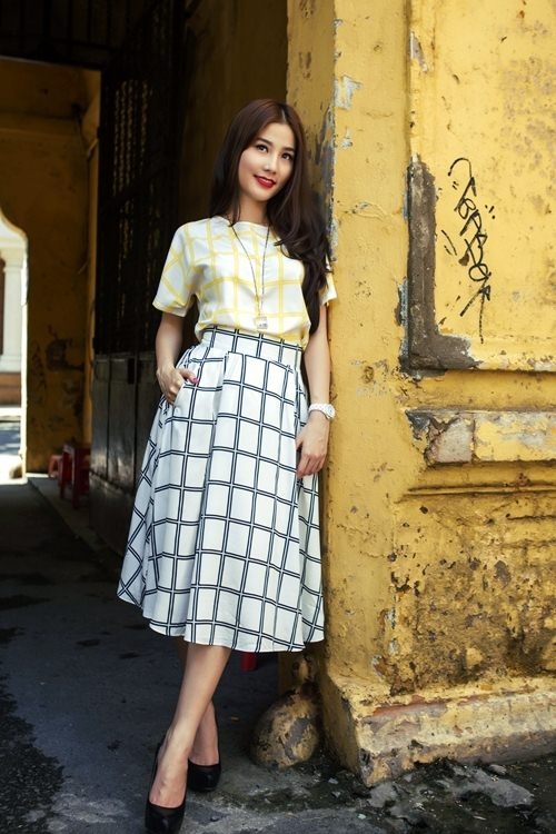 | Bộ trang phục thanh lịch giúp Diễm My xinh đẹp và nữ tính hơn tuy nhiên nó lại bị tố là hàng nhái. |