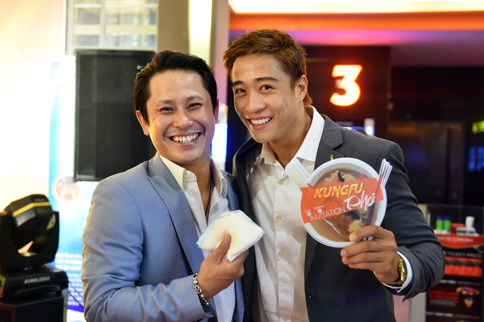 Tối 11/8, bộ phim Kung Fu Phở có buổi công chiếu dành cho giới truyền thông Hà Nội. Tham gia sự kiện có hai diễn viên chính của bộ phim là Diễm My 9X và Linh Sơn.