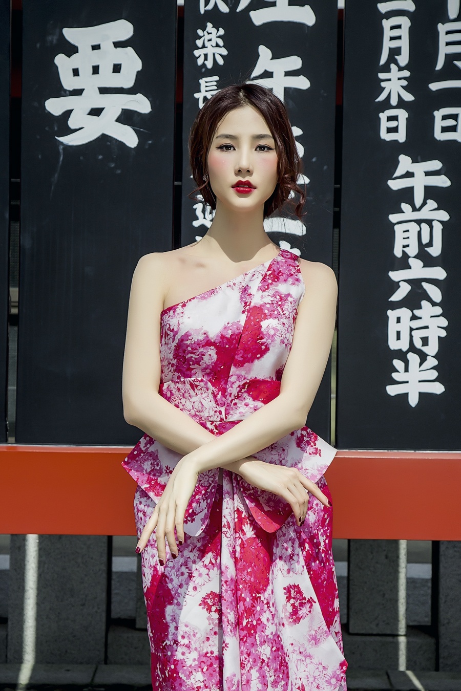 | Nữ diễn viên nổi bật trên đường phố Nhật Bản với trang phục sắc hồng ngọt ngào, lãng mạn. |