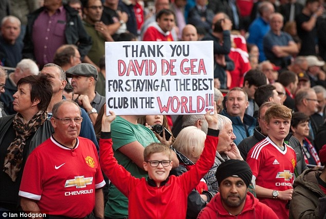 | Người hâm mộ MU rất vui khi De Gea quyết định gắn bó lâu dài với bầy Quỷ đỏ. Ảnh: Daily Mail. |