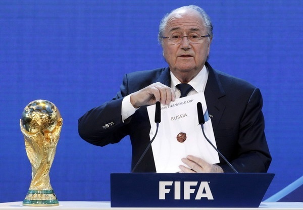 | Chủ tịch FIFA Sepp Blatter công bố chủ nhà World Cup 2018. Ảnh: Getty Images. |