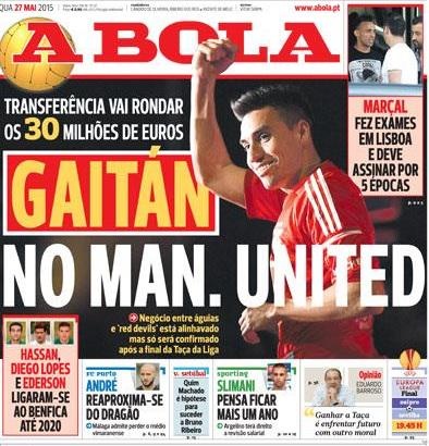 Tờ A Bola của Bồ Đào Nha đưa tin, ban lãnh đạo Benfica và Manchester United vừa thống nhất mức phí chuyển nhượng cầu thủ chạy cánh Nicolas Gaitan. Theo đó, đội chủ sân Old Trafford sẽ bỏ ra 30 triệu euro để sở hữu ngôi sao người Argentina. Thương vụ sẽ được hoàn tất ngay sau trận chung kết Taca da Liga giữa Benfica và Maritimo ngày 30/5. Trước đó, Gaitan từng là mục tiêu săn đón số 1 của Chelsea.