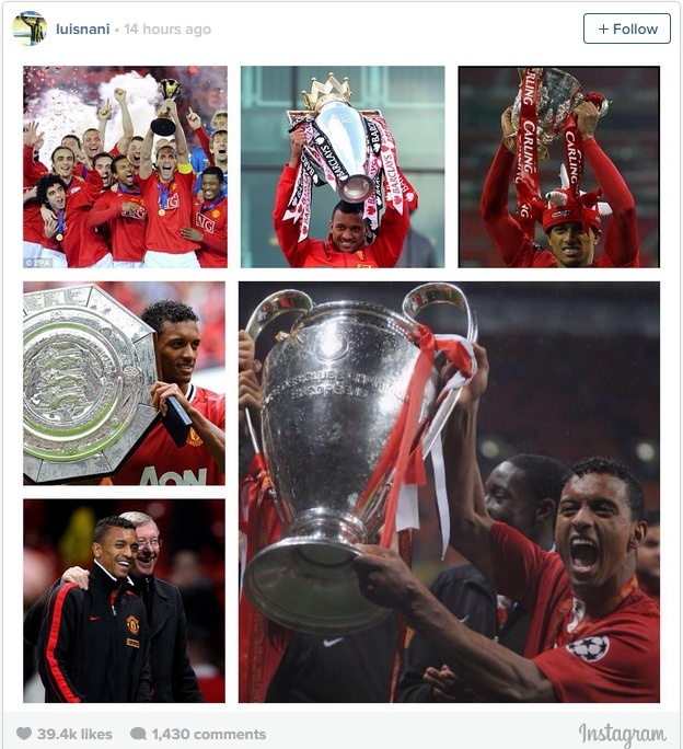 Trên Instagram cá nhân, ngôi sao 28 tuổi đăng hình ảnh những lần giơ cao danh hiệu ở Manchester United cùng dòng chia sẻ bằng tiếng Bồ Đào Nha: "Tôi rời Manchester với nhiều danh hiệu và kỷ niệm đáng nhớ. Cảm ơn những người đã giúp tôi trải qua chặng đường tuyệt vời và chúc tất cả thành công. Cảm ơn các đồng đội, nhân viên và đặc biệt là Sir Alex Ferguson". Hôm 6/7 vừa qua, tuyển thủ người Bồ Đào Nha gia nhập Fenerbahce theo bản hợp đồng 3 năm với phí chuyển nhượng 4,25 triệu bảng. Trong 8 năm gắn bó với M.U, Nani ra sân 230 trận, ghi 40 bàn thắng và giành 11 danh hiệu.