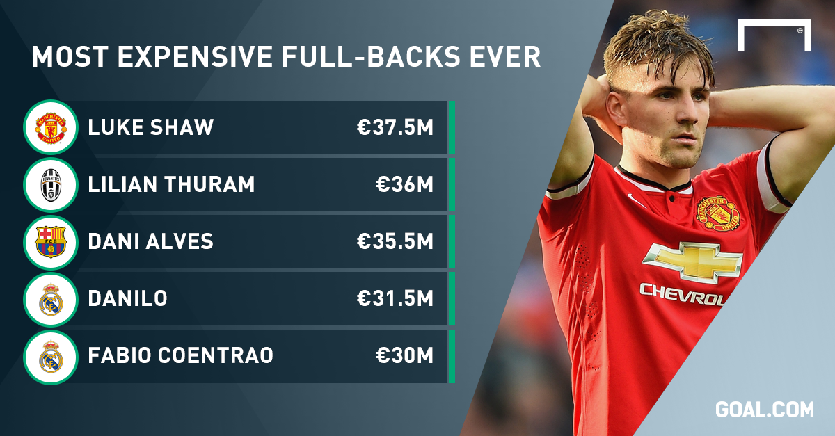 | Luke Shaw của M.U là hậu vệ cánh đắt nhất thế giới với giá chuyển nhượng 37,5 triệu euro. |