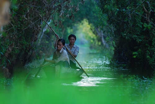| Cuộc sống đời thường của người dân miền Tây với chiếc ghe nhỏ, bầy vịt trắng... trên những nhánh kênh chằng chịt được quay phim Nguyễn Tranh chăm chút tỉ mỉ, cẩn thận. |