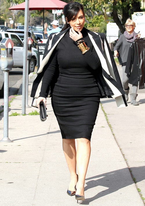 Ngôi sao "siêu vòng 3" Kim Kardashian phô diễn đường cong bốc lửa trong bộ đầm đen ôm sát đơn giản và dùng phụ kiện làm điểm nhấn. Blazer khoác hờ là sản phẩm của nhà mốt Lanvin. |