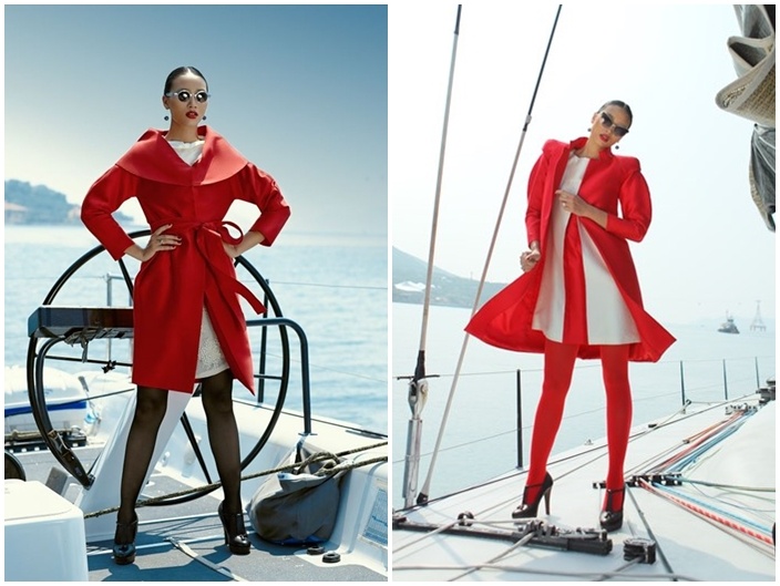 Trong chuyến tham dự cuộc thi Hoa hậu hoàn vũ 2013, người đẹp Trương Thị May đã mang theo rất nhiều các mẫu áo măng tô hiện đại có gam màu bắt mắt. (Ảnh: NVCC)