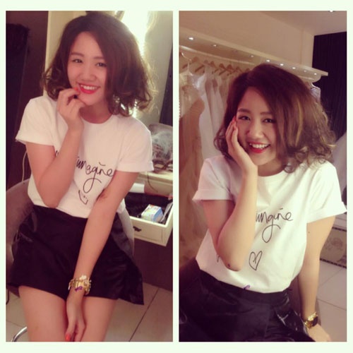 Cùng ngắm những phong cách trẻ trung của Văn Mai Hương với nhiều kiểu áo thun năng động: