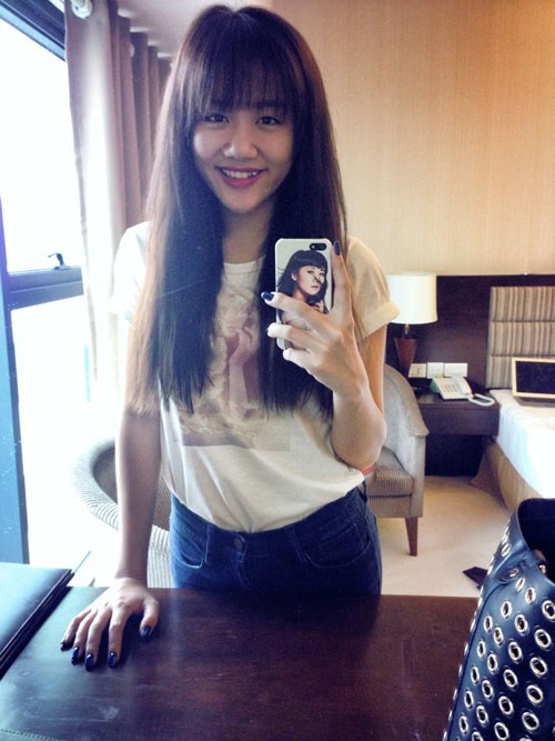 | Văn Mai Hương tạo được thiện cảm khi thường xuyên chọn phong cách áo thun, quần jeans trong cuộc sống đời thường, rất thích hợp với độ tuổi. |