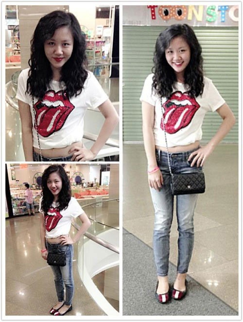| Đôi khi cô nàng còn táo bạo diện áo in slogan tế nhị. |