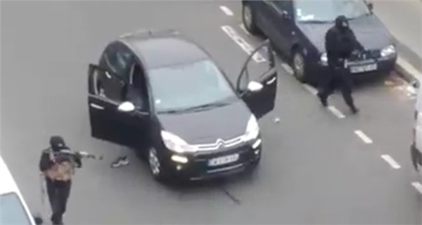 | Khoảng 11h25 giờ địa phương ngày 7/1, những tay súng đội mũ trùm đen, xông tới tòa soạn của tạp chí Charlie Hebdo ở thủ đô Paris, Pháp. Chúng ép một nhân viên của tờ báo mở cửa bằng mã bảo vệ và sau đó xông lên phòng họp – nơi đa số đội ngũ biên tập đang họp hàng tuần. Những kẻ tấn công đã xả súng giết chết tổng biên tập của tờ báo, ông Stephane Charbonnier, cùng 4 nhà báo khác. Sau đó, chúng lao xuống phố và bắn bừa bãi vào những người đi đường, đồng thời cướp một chiếc xe để tẩu thoát. Tuy nhiên, do bị xe cảnh sát chặn nên những kẻ khủng bố đã nổ súng, khiến 2 cảnh sát thiệt mạng. Theo các nhân chứng, họ nghe thấy những kẻ khủng bố hét lên rằng, chúng là thành viên của tổ chức al Qaeda, chi nhánh tại Yemen. Ảnh: Youtube |