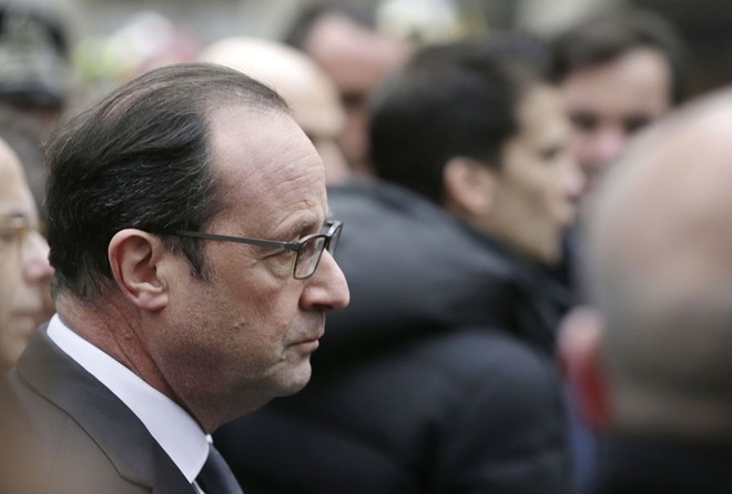| Tổng thống Francois Hollande đã nhanh chóng tới hiện trường và tổ chức một cuộc họp nội các khẩn cấp về vụ việc. Ông Hollande tuyên bố đây là "một vụ khủng bố", đồng thời cho biết ngoài 12 người thiệt mạng còn có ít nhất 4 người nguy kịch. Nước Pháp đã nâng cấp độ báo động ở Paris lên mức cao nhất sau vụ xả súng. Theo đó, hệ thống báo động an ninh quốc gia được đặt ở chế độ "báo động tấn công". Ảnh: Mirror |