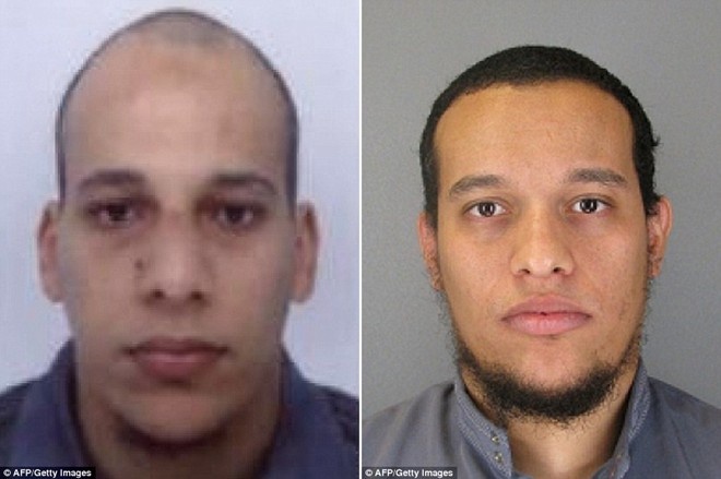 | Cảnh sát đã nhanh chóng xác định danh tính 3 hung thủ của vụ xả súng kinh hoàng dựa vào thẻ căn cước mà một tên trong số chúng bỏ quên trên ôtô. Chúng gồm 2 anh em ruột Said Kouachi, 34 tuổi, Cherif Kouachi, 32 tuổi và Hamyd Moura, 18 tuổi. Tên Hamyd đã đầu thú trước cảnh sát chỉ vài tiếng sau vụ tấn công. Ngay lập tức, Pháp điều động khoảng 88.000 nhân viên an ninh, máy bay trực thăng cùng xe bọc thép để truy lùng tung tích những kẻ cực đoan còn lại tại một khu rừng ở vùng quê Aisne, phía đông bắc thủ đô Paris. Ảnh: AFP |