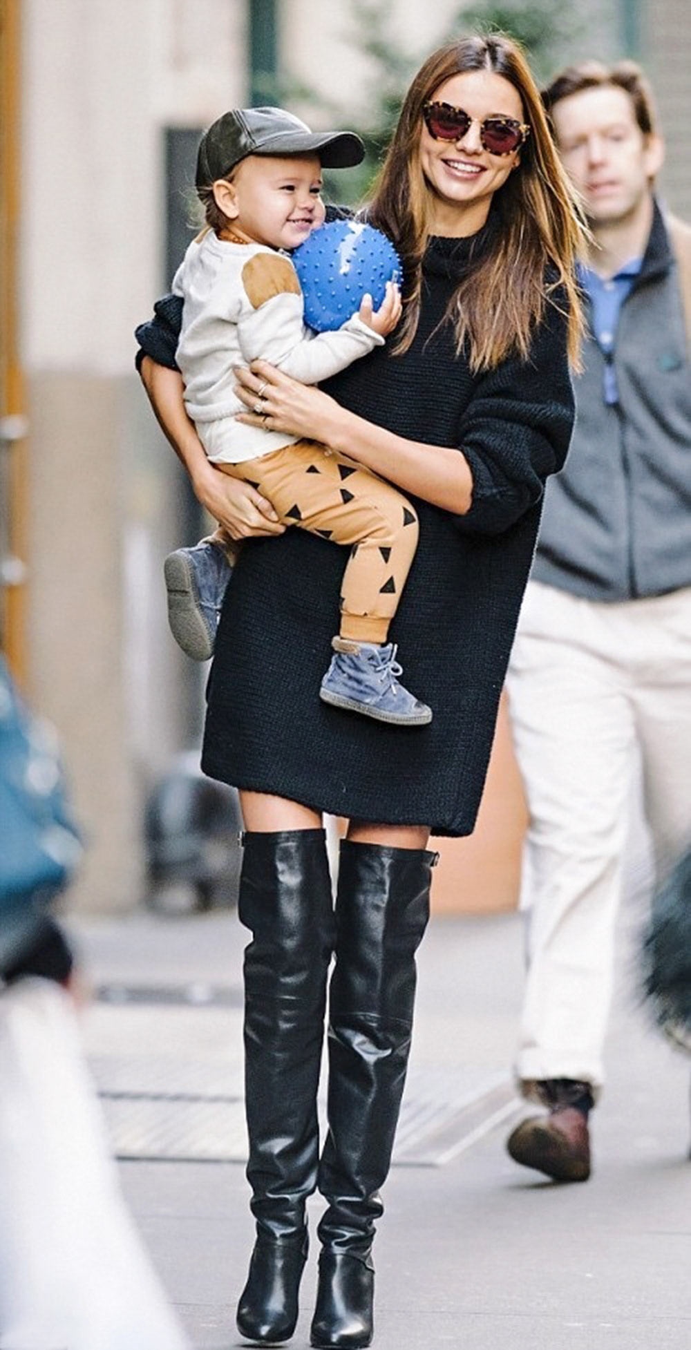 | Cả cây đen đơn giản của Miranda Kerr được tạo điểm nhấn bằng cặp kính sành điệu. |