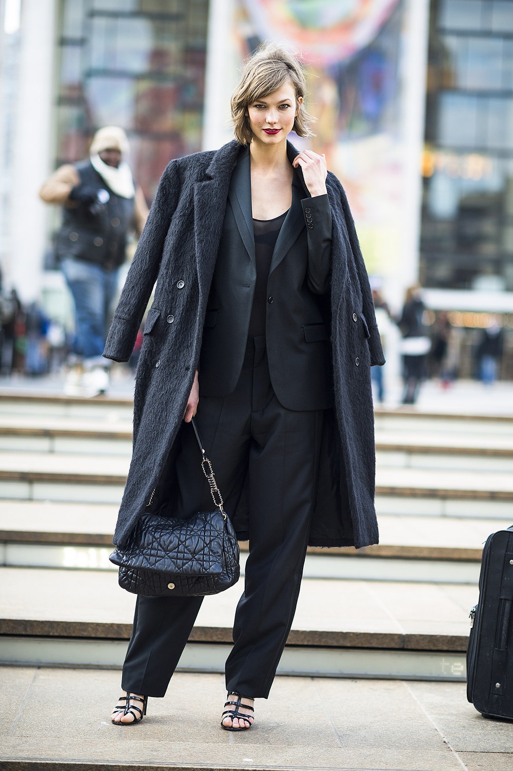 | Karlie Kloss chứng tỏ trình độ mix & match tinh tế với set đồ đen 3 lớp sành điệu. |