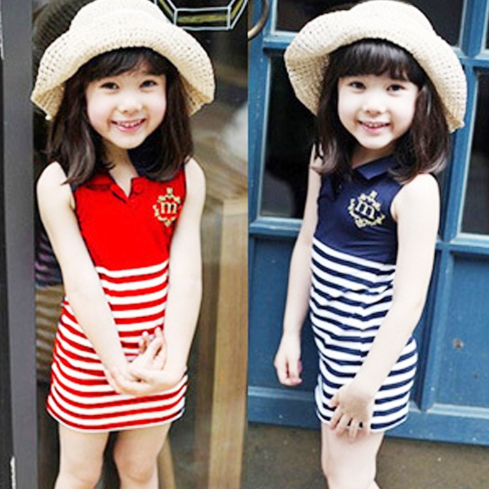 | Dành cho những cô bé tinh nghịch và hiếu động, chiếc đầm suông cổ sơmi với đường kẻ ngang giá 120.000 đồng sẽ giúp bé cảm thấy thật thoải mái. |