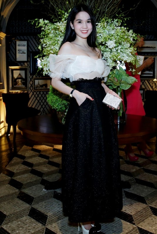 | Áo voan trễ vai và đầm maxi là lựa chọn hết sức duyên dáng của Ngọc Trinh với 2 tông màu cơ bản. |