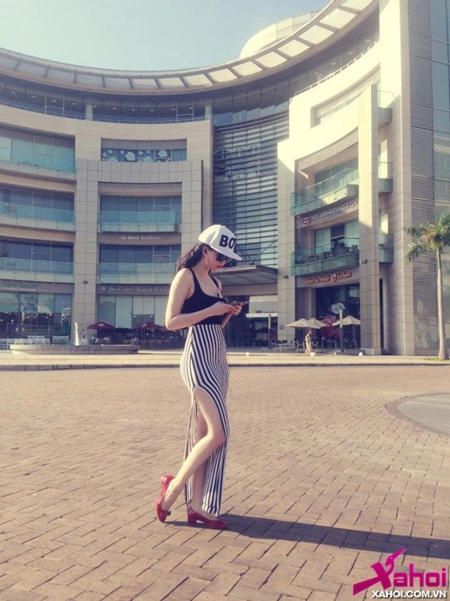 Cũng có khi cô lại rất trẻ trung, năng động với short, croptop và mũ lưỡi trai.