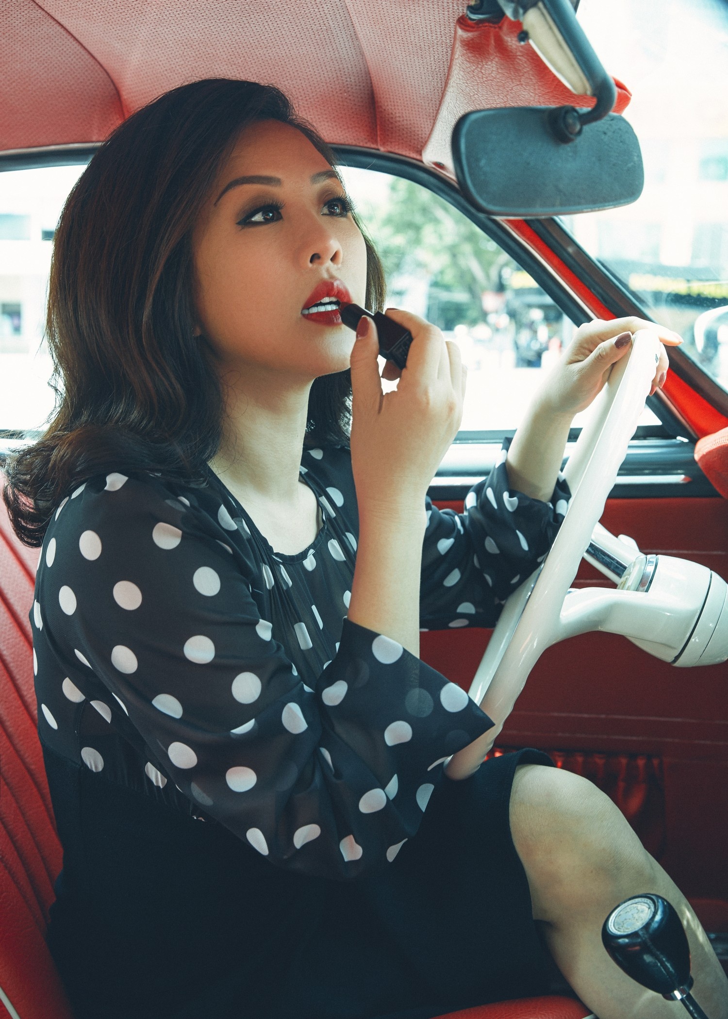 Diện đồ chấm bi cổ điển, sang trọng như Hoa hậu Thu Hoài