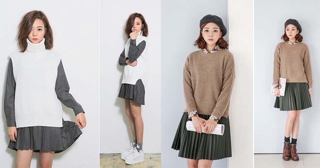| Chỉ cần kết hợp 2 chiếc áo và chân váy khác nhau, bạn đã có ngay 2 set đồ đông thật ngọt ngào, nữ tính. Nhờ đó tha hồ tận dụng trang phục của mùa đông năm trước vào set đồ những ngày lạnh năm nay. |